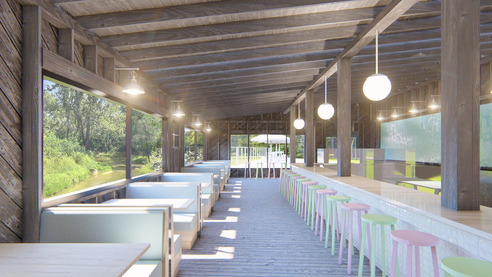 A historic gristmill dating back to 1846, the Gish Mill will be preserved and transformed in a mixed-use complex, featuring a restaurant, micro-brewery, retail, and lodging. The design seeks to preserve the architectural elements and equipment found in the existing mill, such that the workings and story of the historic mill can still be understood by those who experience the space. The existing grain silos are being converted into short-term rental apartments, and the de-commissioned concrete sluice is being repurposed as the foundation for a large outdoor dining deck overlooking the creek. The project is scheduled to be complete in late 2026.